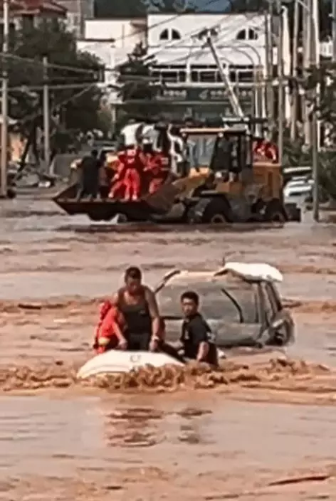 綜合內媒報導,北京市密雲區太師屯鎮葡萄園村近來遭遇百年一遇特大暴雨。山洪爆發,積水最深處達2至3米,多戶村民被困屋頂,現場情勢危急。關鍵時刻,多名村民自發組成救援小隊,駕駛鋤車、配合消防及漁民,合力將過百名受困居民安全轉移,被網民稱為「鋤車俠」。