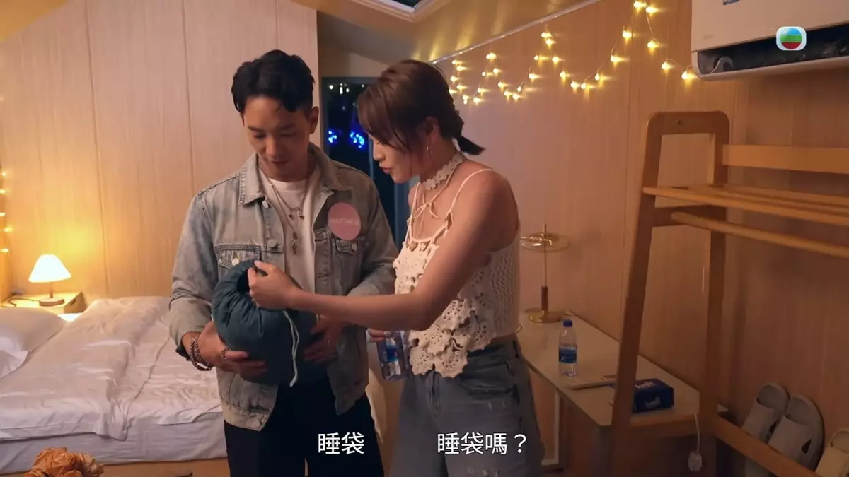 在分床環節,Carman展現了對另一半的體貼面,再度贏盡網民正評。事緣Carman雖然對於房間只有一張床有些驚訝:「我見到得一張床嘅時候我呆咗咯,吓!咁點呀?!」但由於有感黃家俊玩遊戲玩了一整天需要好好休息,即提出願意同床意願,貼心度爆燈:「一係咁喇,你畀個睡袋我,我哋一人瞓一邊,(我)冚住(個睡袋)咯,好似安全感大啲咯。」