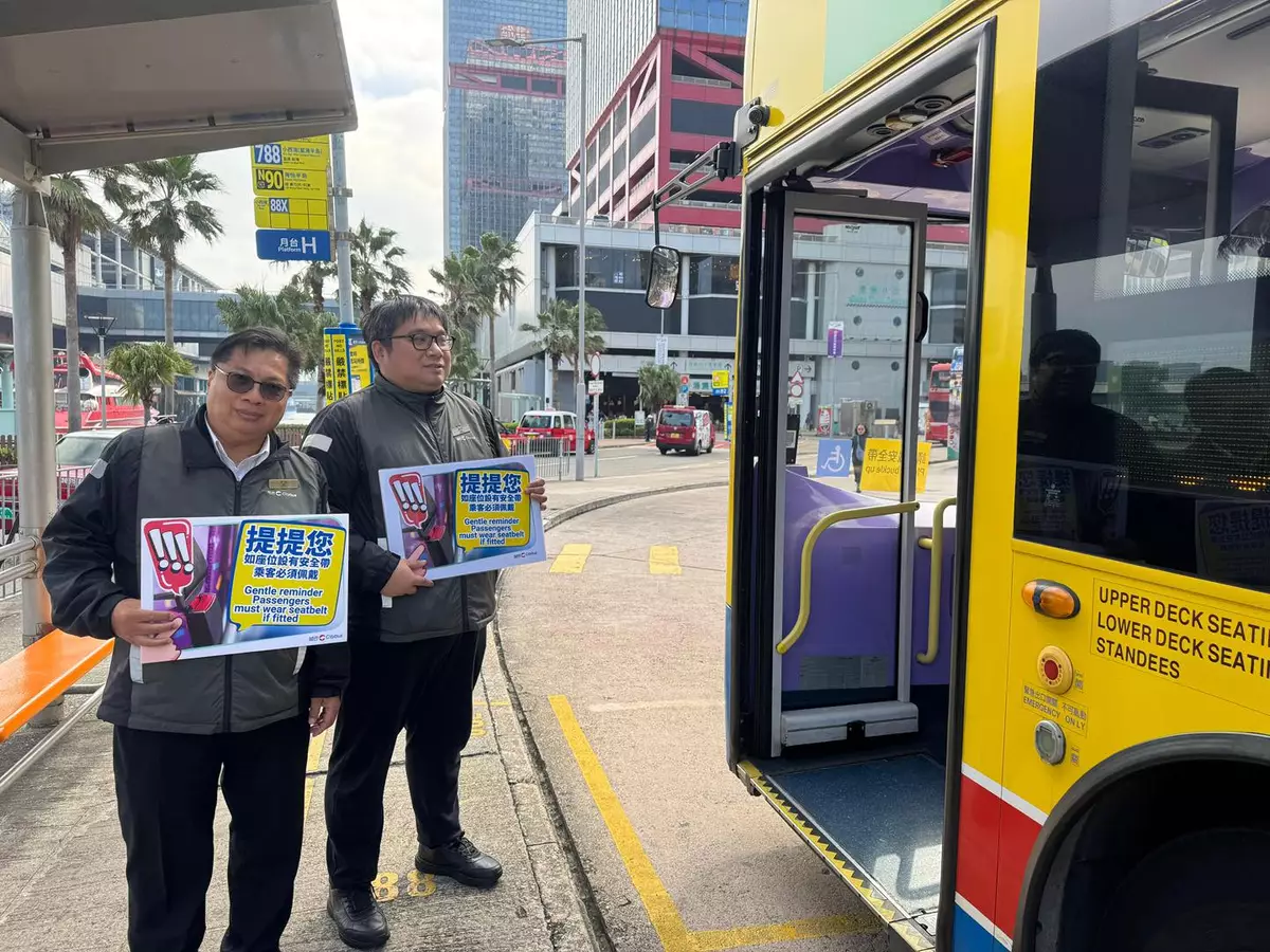署方又說,為協助乘客適應,已跟專營巴士及港鐵巴士營辦商進一步加強宣傳和公眾教育,包括在港九新界人流較多的巴士總站,例如中環港澳碼頭、牛頭角樂華、葵涌大隴街、粉嶺皇后山及東涌站等巴士總站,以及不同公共運輸交匯處如屯門站、兆康站(北)和天水圍站等公共運輸交匯處,加派職員提醒乘客包括兒童、長者及有需要人士,穩妥佩戴安全帶,並於有需要時提供協助。