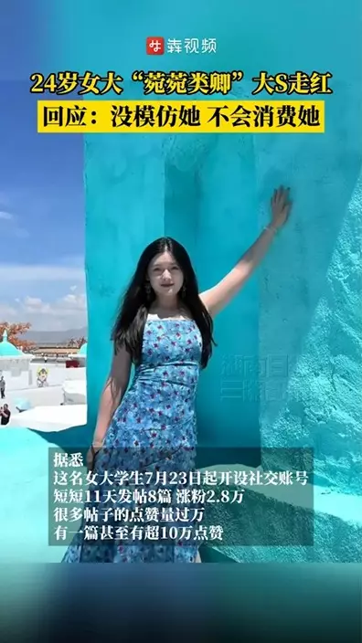 重慶醫科大學一名24歲女大學生,近日在網上分享其青海旅行照片,因外貌神似已故台灣藝人大S而引起網民關注,迅速走紅。