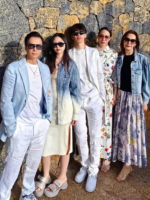 甄子丹日前喺社交平台上載全家福,畫面溫馨又有格調。一家人以藍白色tone調穿搭登場,簡約中見清新,散發滿滿夏日感。一對仔女Jasmine(甄濟如)與James(甄濟嘉)高挑搶眼,遺傳咗媽咪汪詩詩嘅模特兒身形,加上五官標緻,簡直星味十足,即刻成為網民焦點:「哇!一個家庭全員顏值擔當!」