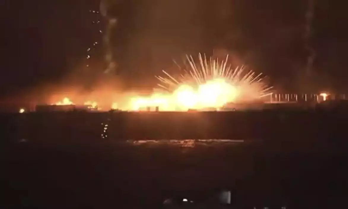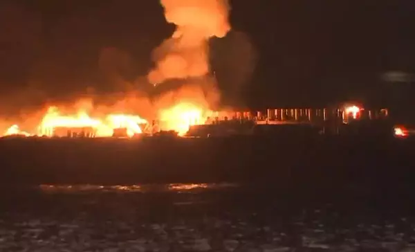 日本裝有2萬發煙花的發射船突冒火光導致活動被暫停。影片截圖
