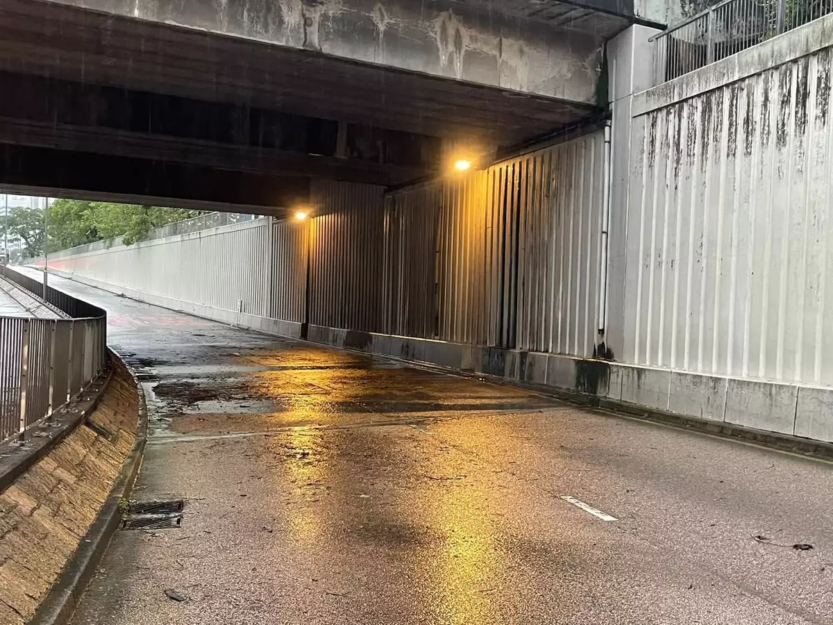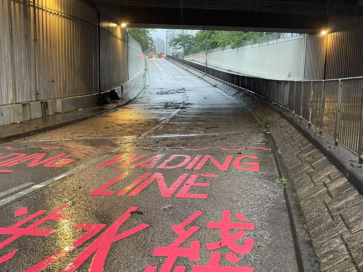 渠務署於社交網頁表示,大埔墟南運路出現嚴重水浸,已派遣強力排水機械人「龍吸水」在現場協助處理水浸。