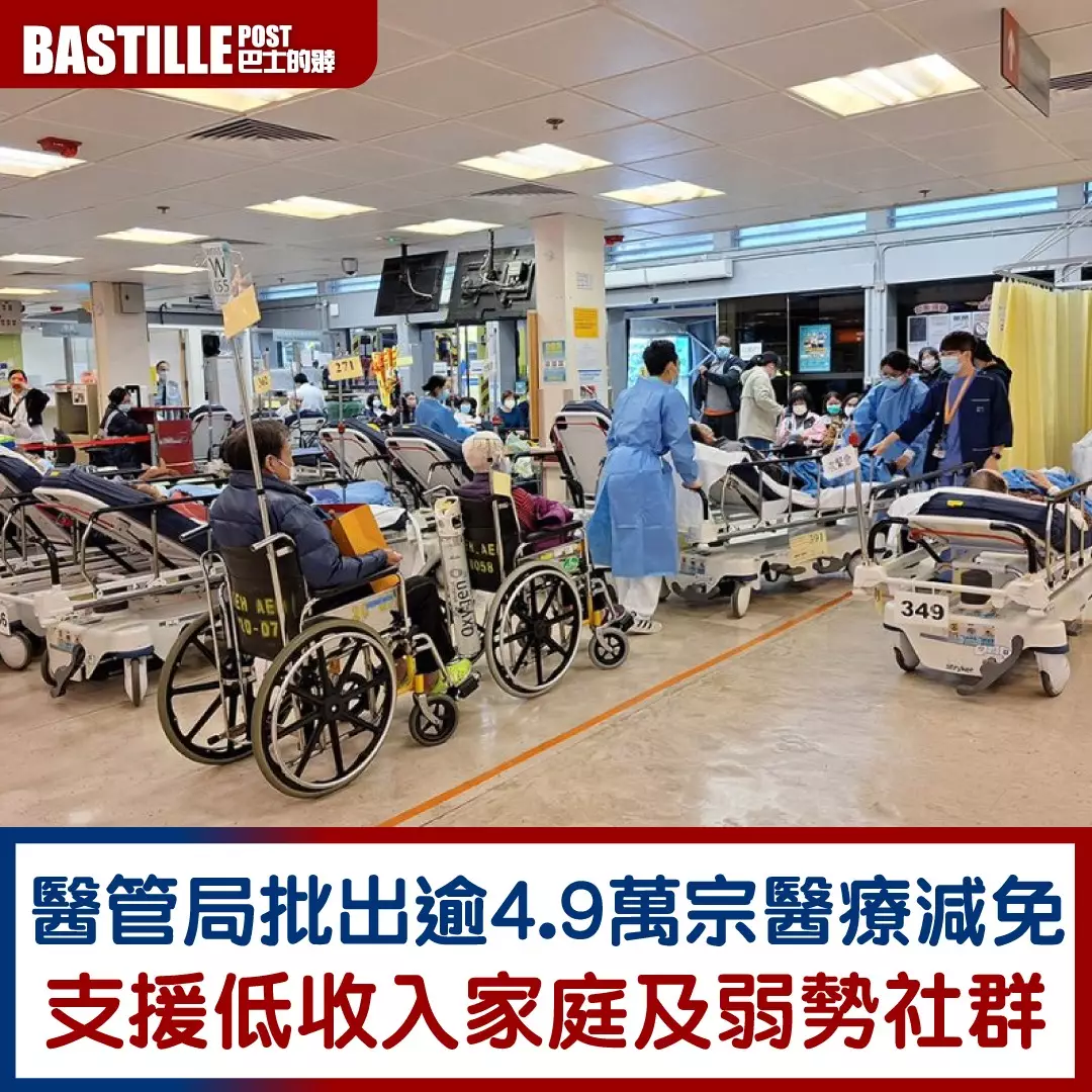 發言人稱,數據清楚顯示,配合公營醫療收費改革新引入的擴大醫療費用減免機制,能夠更精準有效投放資源,令更多貧、急、重、危病人受保障。