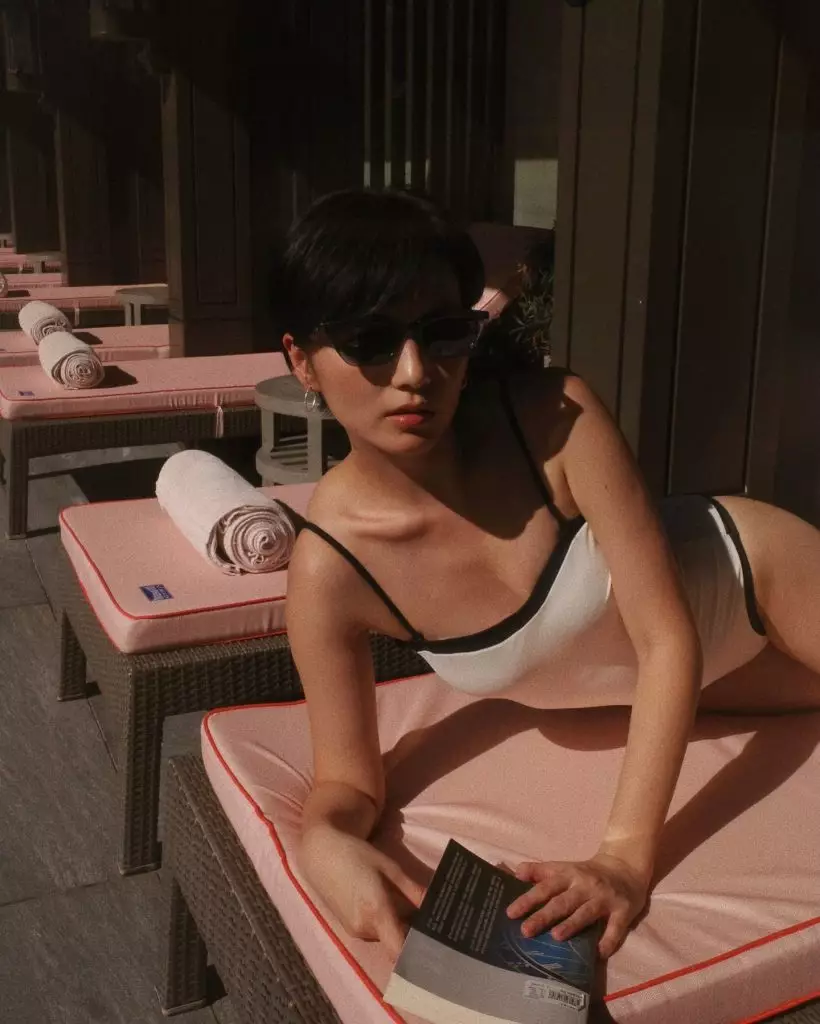 相中所見,Anjaylia以白色一件頭泳衣上陣,坐在沙灘椅上大擺S形甫士,盡顯其零贅肉完美身段,不僅大晒纖腰與長腿,線條相當勻稱,舉手投足更是少女味濃,完全看不出已是三孩之母。她亦配文寫道:「夕陽正好,Let's enjoy our golden hour」,享受屬於自己的悠閒時刻。