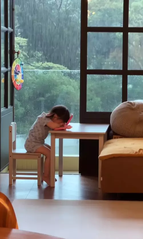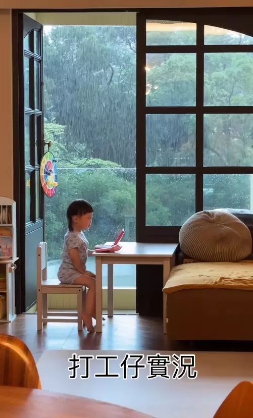 香港近期極端天氣頻現,連日來暴雨不斷,但不少打工仔依然要冒雨返工,李璨琛的細女Sucy就化身被迫上班的打工仔,媽媽梁志瑩(Sophia)在IG晒出影片,並留言:「天氣咁差,星期一,仲要咁大雨,炳炳都話真係唔想返工#炳炳又同大家一齊感同身受。」