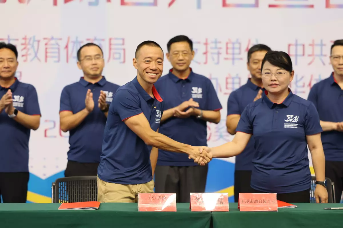 中國香港三項鐵人總會秘書長陳岳鵬和玉溪市教育局局長張燕華代表簽署合作備忘錄