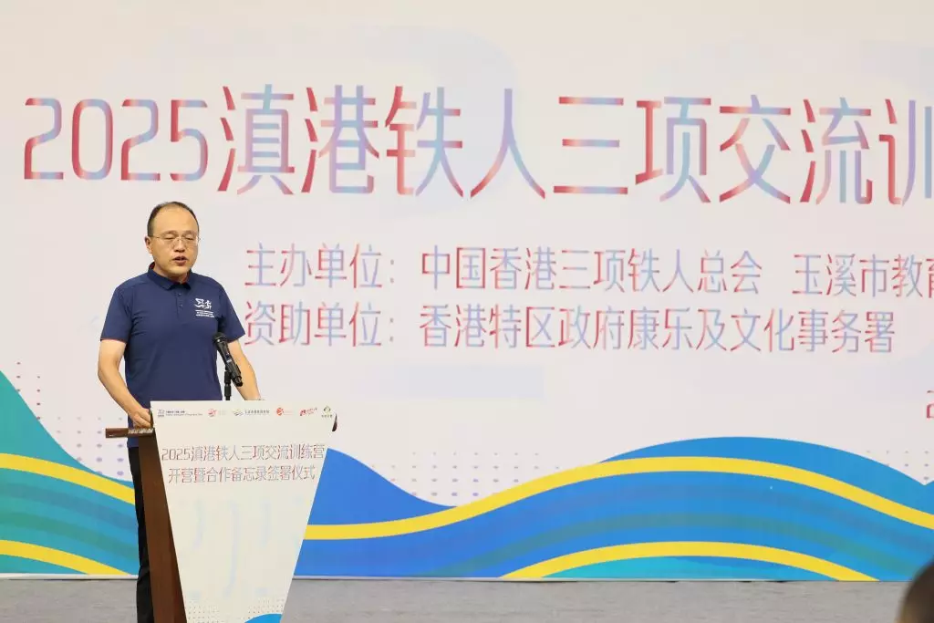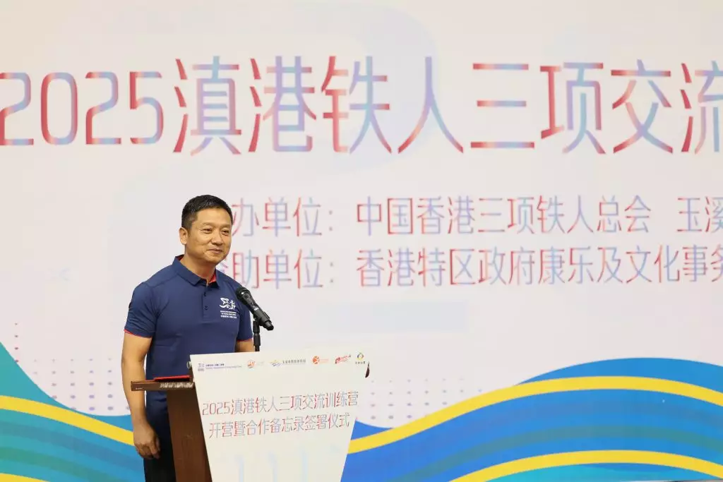 開營儀式上,雲南省委統戰部副部長趙修春致辭指出,三項鐵人是一項體現拼搏精神和團隊協作的運動專案,正與體育合作所追求的包容與互信高度契合。雲南省擁有優越的自然環境和高原訓練資源,而玉溪高原體育運動中心作為國內知名的亞高原訓練基地,長期以來為內地及香港的運動員提供了理想的訓練條件,成為滇港建立體育聯繫的重要橋樑。趙修春強調,省委統戰部高度認可並積極支持滇港體育合作,非常歡迎香港三鐵總會和香港體育界同仁多來雲南進行訓練和交流。此次活動是雲南與香港深化體育交流的新起點,未來滇港雙方將以此為契機,進一步整合資源,助力兩地體育事業的繁榮發展。