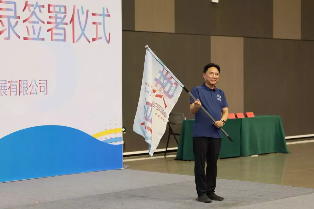玉溪市委常委、統戰部部長普光照代表授旗給中國香港三項鐵人總會代表。