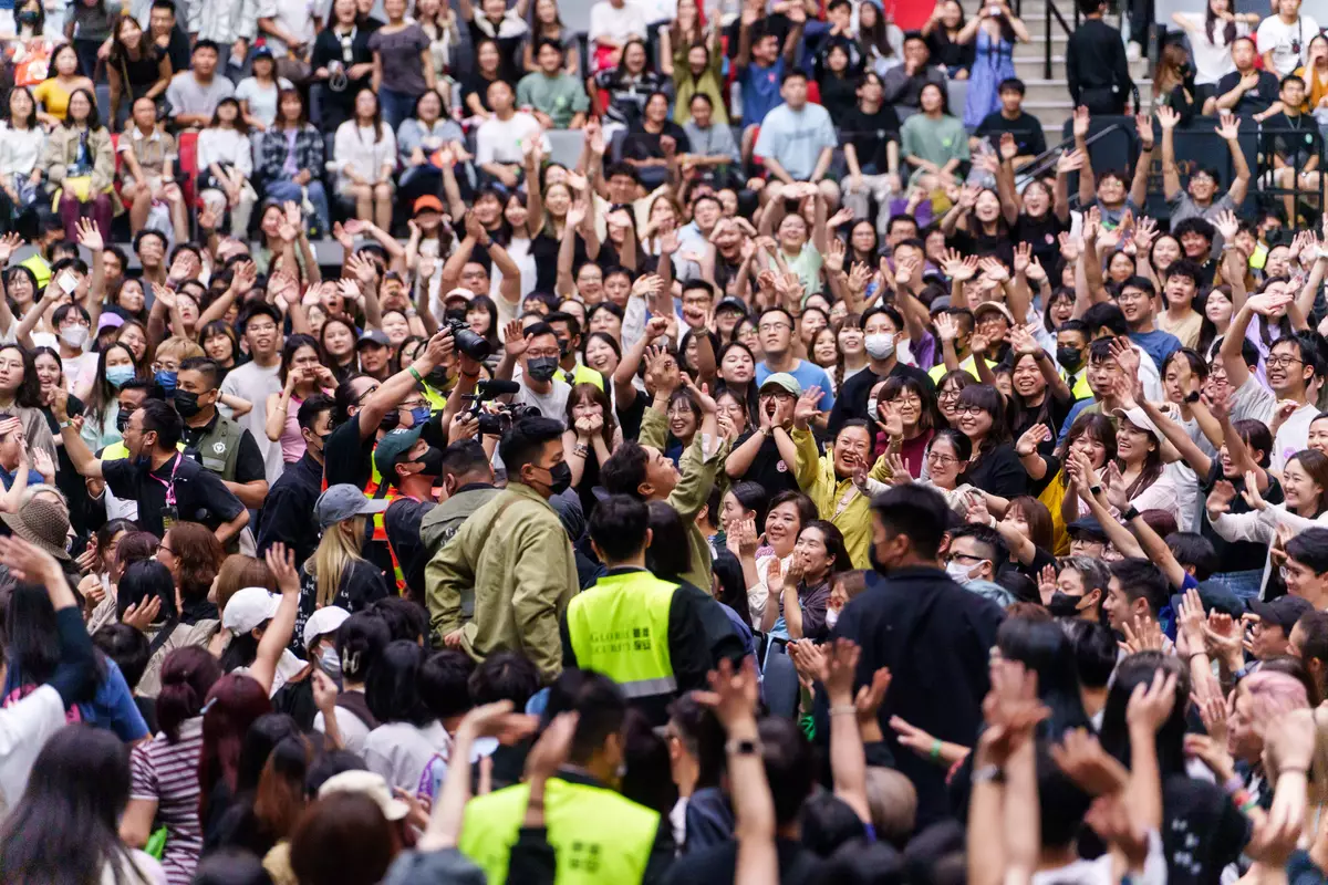 當司儀宣布,Eason等一下會跟我們一起坐在觀眾席上看,觀眾馬上瘋狂起哄,全部站立拍手歡呼,直到他抵達觀眾席座位,Eason也特別繞場一圈,跟四方八面來支持的觀眾打招呼,才回到自己座位,讓現場興奮開心無比。