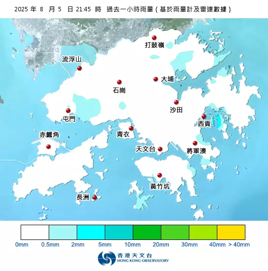 天文台在晚上9時45分發出特別天氣提示,預料未來一兩小時本港可能受大驟雨影響。