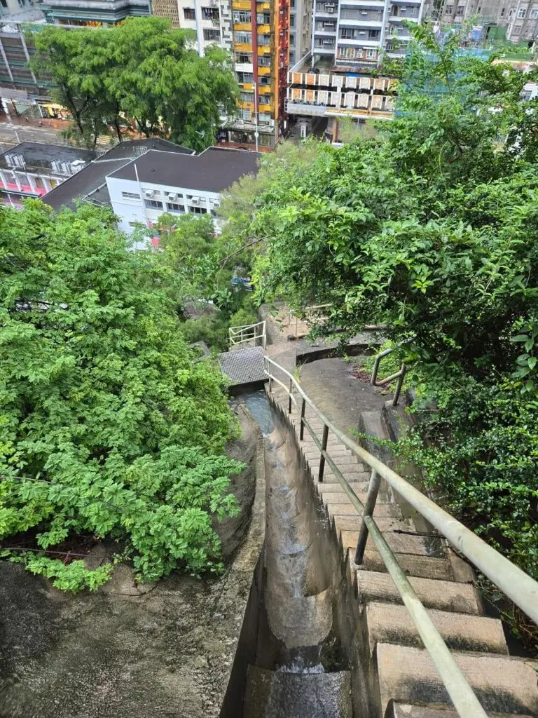 土力工程處下午接報有黑色泥水湧入北角官立小學,覆蓋約半個操場,派出土力工程師聯同相關部門到場視察,現場可見小學後方的人造斜坡和上方天然山坡並沒有山泥傾瀉的跡象。
