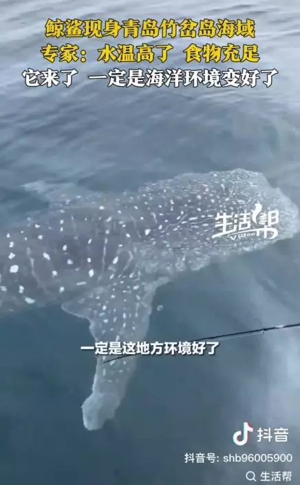 青島海域現罕見「鯨鯊」,全身佈滿星星斑點,釣友目測身長幾近約10米的船身,十分震撼!