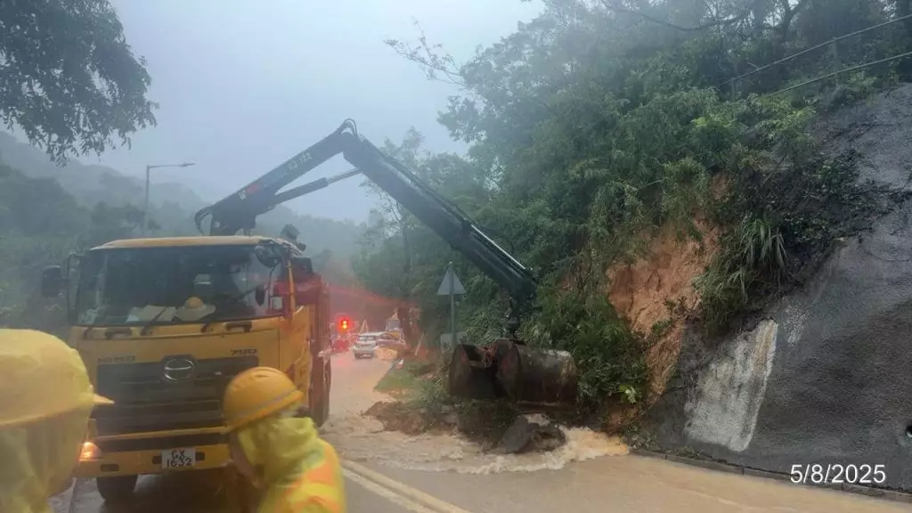 大埔新娘潭路近新娘潭燒烤場山泥傾瀉。fb圖片