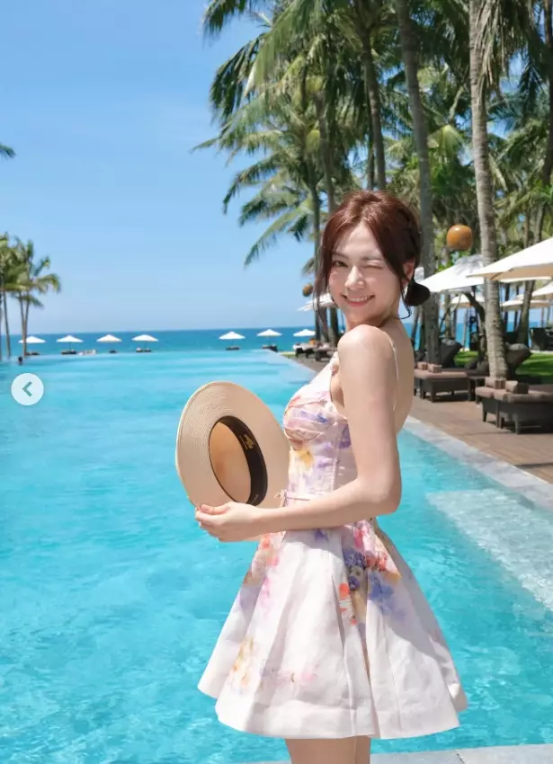 25歲的TVB小花游嘉欣(游游)早前去了越南度假,在當地享受陽光與海灘,面對近日不斷下雨的香港,她就在IG分享旅行的靚相,懷念大太陽的日子,並留言:「下雨天回顧下,椰林樹影!」相中可見,游游穿上碎花吊帶低胸短裙,在艷陽下大晒白滑肌膚及Fit爆好身材,性感又健康,網民都睇到心心眼,大讚「青春無敵」!