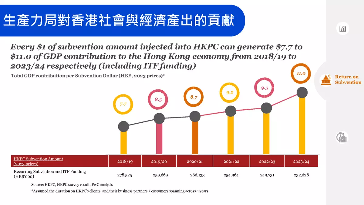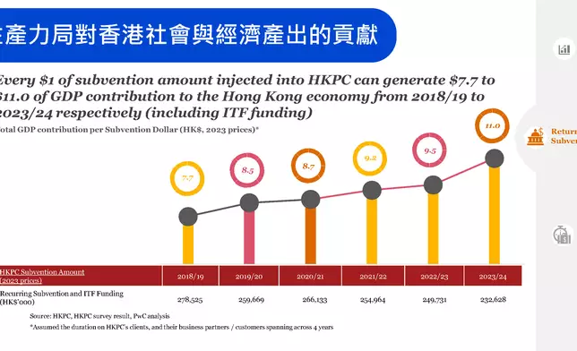 港府注資1元 帶來11元本地生產值貢獻