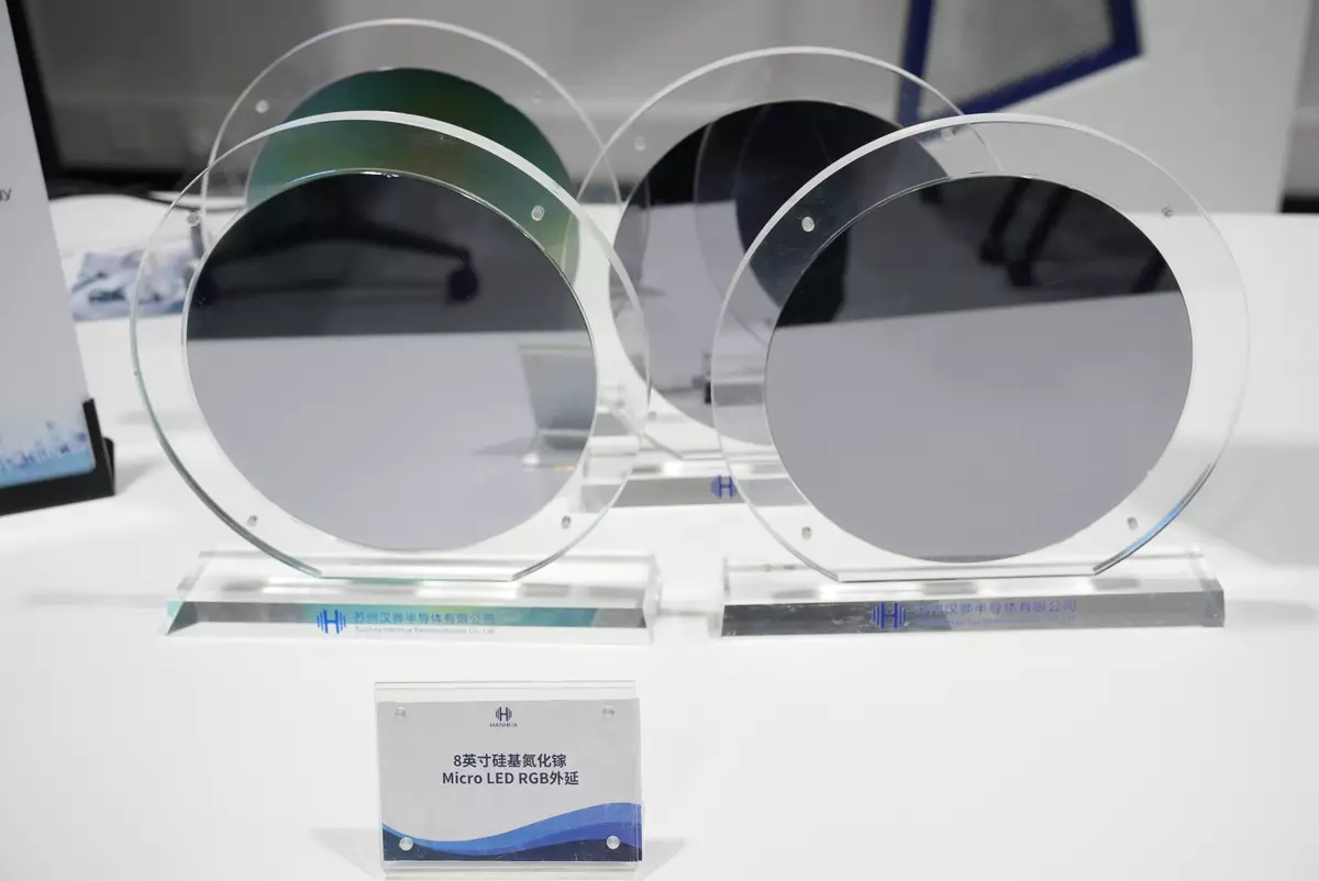 「出海服務中心」展示蘇州漢驊半導體Micro-LED材料與芯片。漢驊認為香港將會成為公司接觸全球前沿應用的理想起點。(巴士的報記者攝)