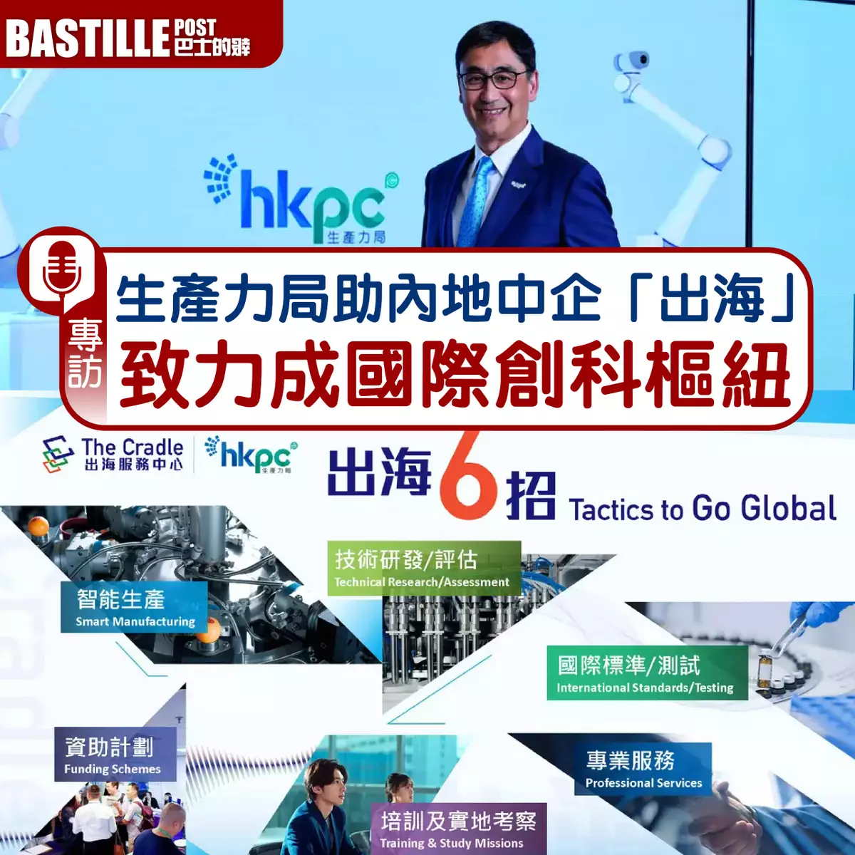 生產力局於今年4月成立「The Cradle 出海服務中心」,主要為內地中小企提供出海服務。生產力局總裁畢堅文接受《巴士的報》專訪時表示,希望透過中心將原有的出海服務延伸至大灣區以外,透過與內地技術創新中心的聯乘,為中國高質量發展出一分力。