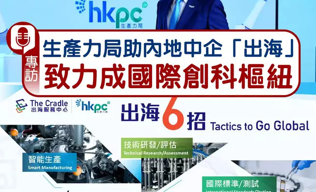 就以上的基礎,生產力局擴展服務範圍,成立「出海服務中心」,聯合內地三大國家技術創新中心—中關村京港澳青年創新創業中心、長三角國家技術創新中心及粵港澳大灣區國家技術創新中心,為內地中小企「出海」提供一站式對接、技術支援及專業服務,涵蓋國際技術標準對接、產品本地化與國際化技術支援、知識產權管理及保護、海外法規等核心領域。畢堅文強調,生產力局同時與技資推廣署、貿易發展局及引進重點企業辦公室等緊密合作,為企業提供多元服務。