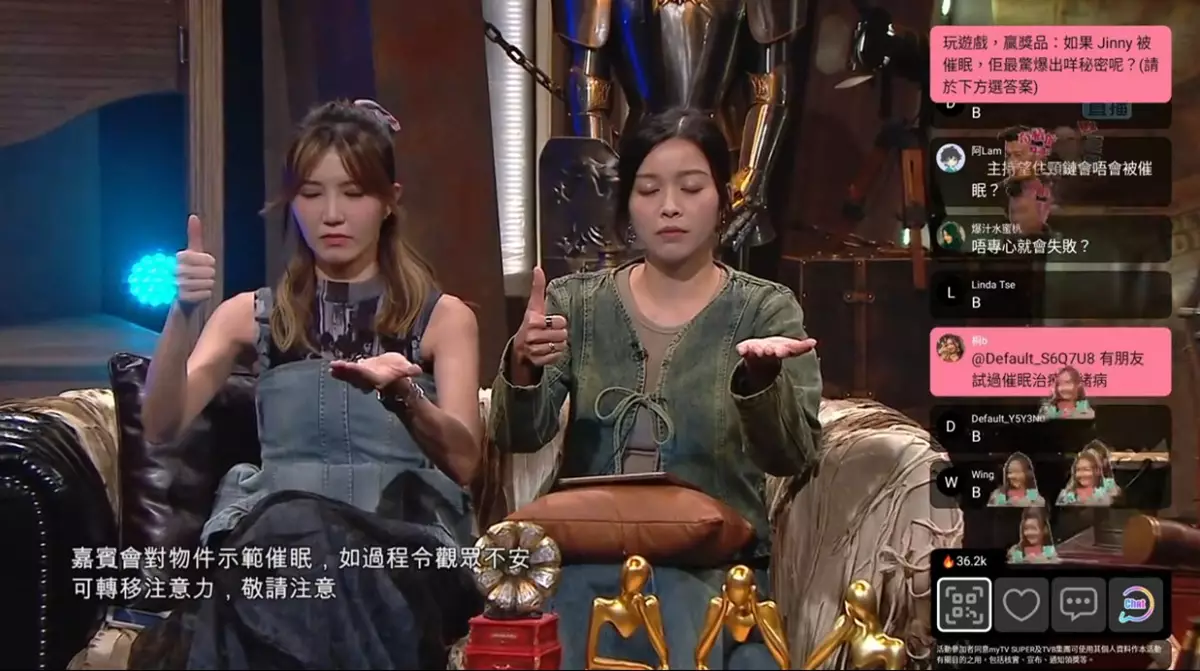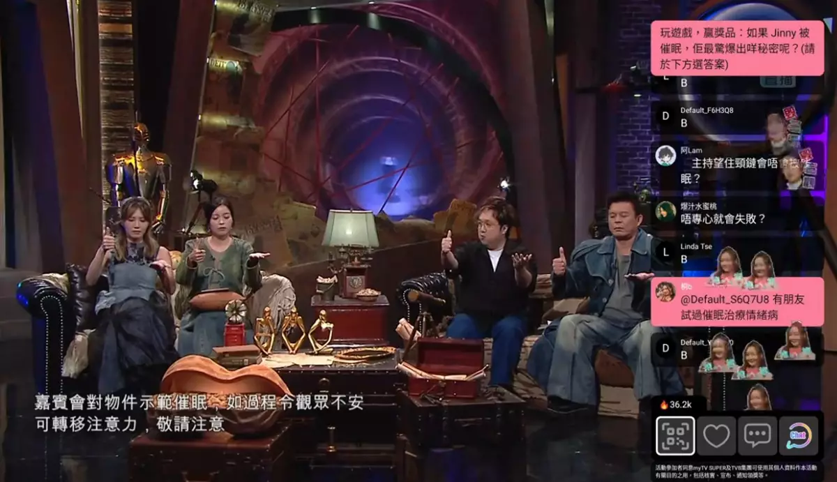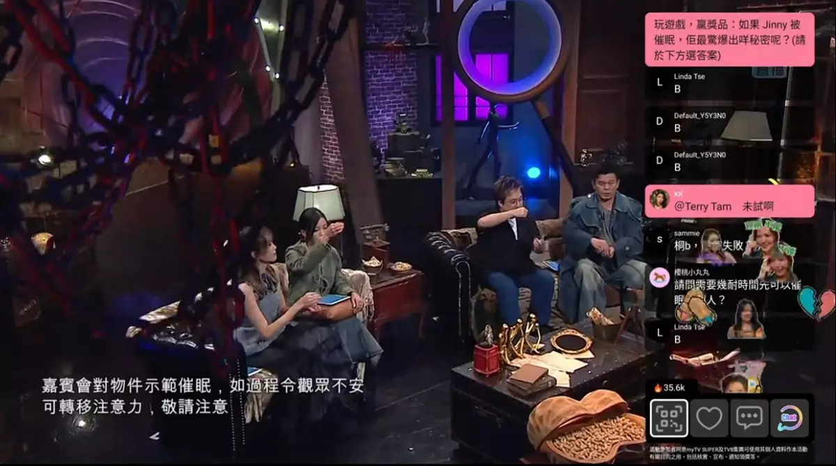由導演火火、吳若希(Jinny)及曾展望(GM)三位谷主主持,TVB Plus(82台)全新直播一小時節目《奇情谷》昨晚(8月5日)主題為「催眠師」,請來現代催眠師林雲峯(Tim Sir)擔任嘉賓。賴慰玲繼續以嘉賓谷主身份亮相,暫替追蹤女神的曾展望(GM)。