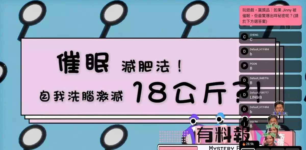 此外,火火在「有料報」環節講到一名女網民尤里爾(Leaha Ureel),她在網上分享靠「潛意識力量」減肥成功過案,影片更獲得到400萬view數而爆紅,他說︰「尤里爾話用『自我催眠』方法,每日同自己講『我好瘦、我好瘦』,點知真係成功減咗18公斤。」有專家解釋是運用心理學上的「視覺化練習」,過程中不斷想像自己已經達標,讓大腦慢慢改變行為模式。Tim Sir從催眠學角度分析,他表示︰「用自我催眠減肥或者實現一啲願望,作用好似喺我哋潛意識植入一啲信念,好似喺泥土種一啲嘢咁,幫助我哋更加有動力,推動自己做想做同應該要做嘅嘢。」