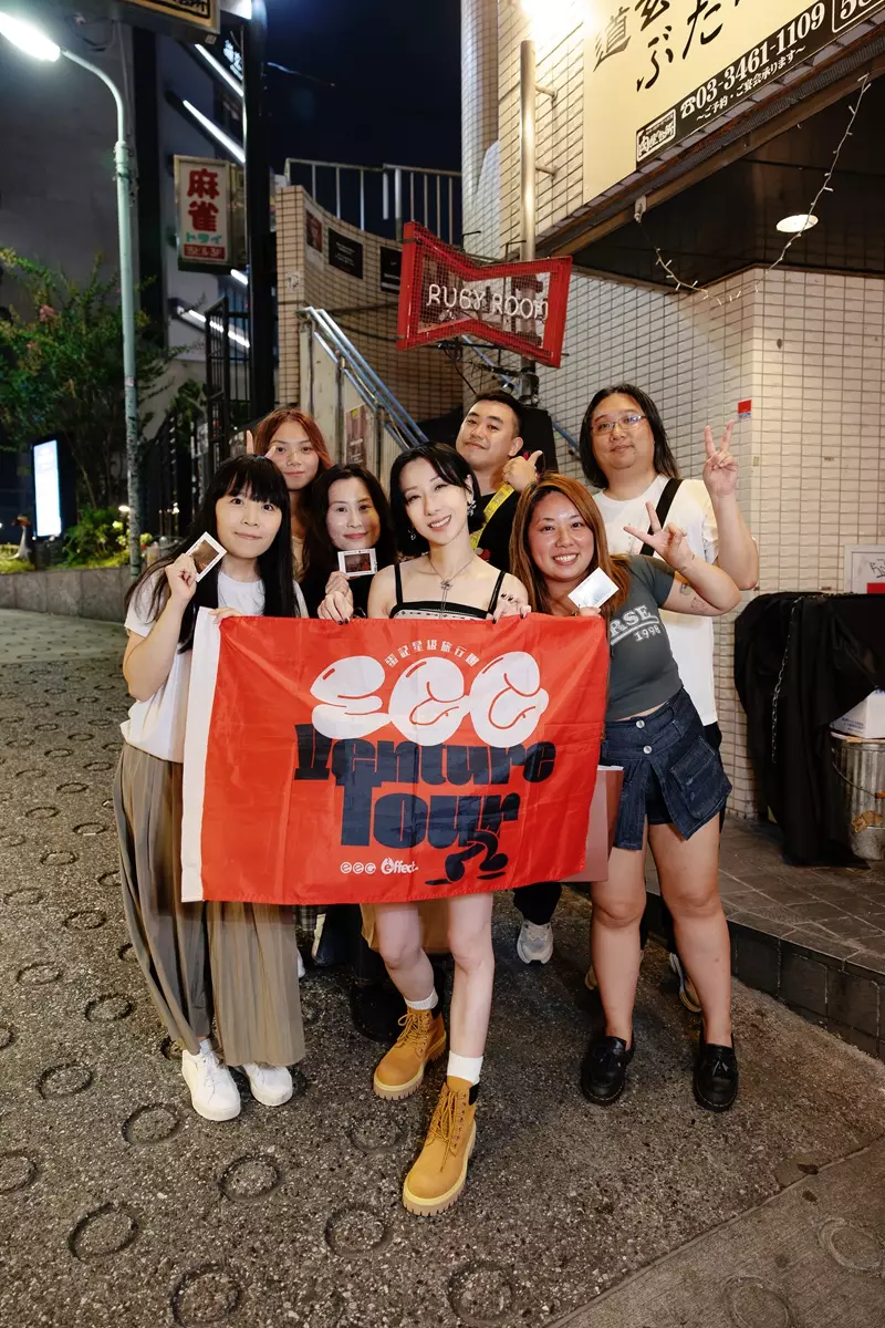 泳兒(Vincy)日前帶着一班幸運fans組成「蛋記星級旅行團(Egg Venture Tour)」玩轉東京,這次Vincy的「東京計劃書」第一彈,決定將廣東歌帶去日本,殺入當地著名Live House「Ruby Room」,挑戰Live House的規定:十五分鐘表演、無綵排、無sound check的情況下,突襲開唱,絕對是「玩命級」體驗!