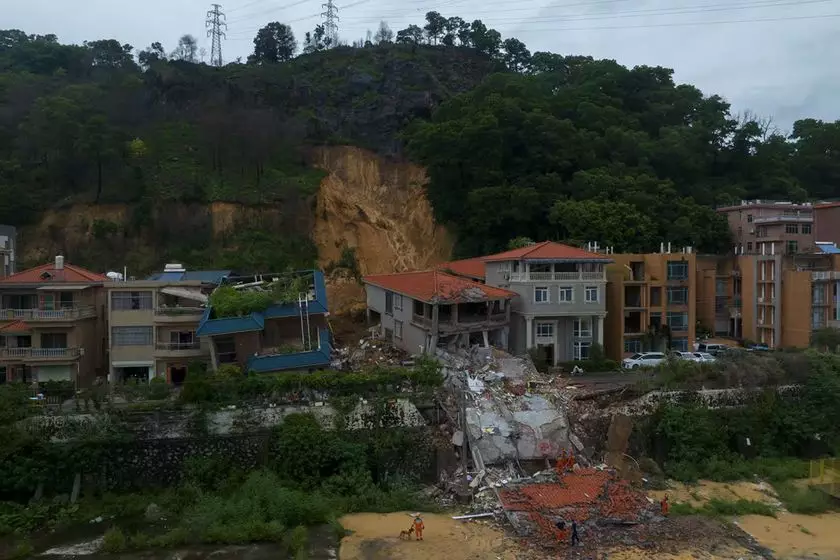 白雲區星期三(8月6日)早上發生因強降雨引發的山泥傾瀉,有房屋受損。微博圖片