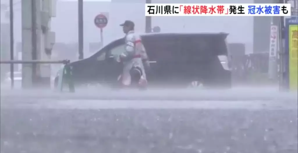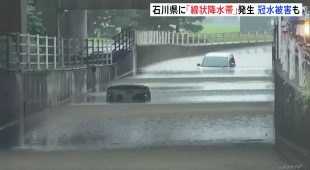 日本石川縣雨量破紀錄。JNN影片截圖