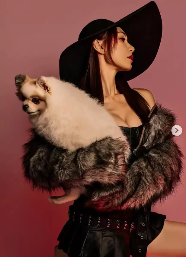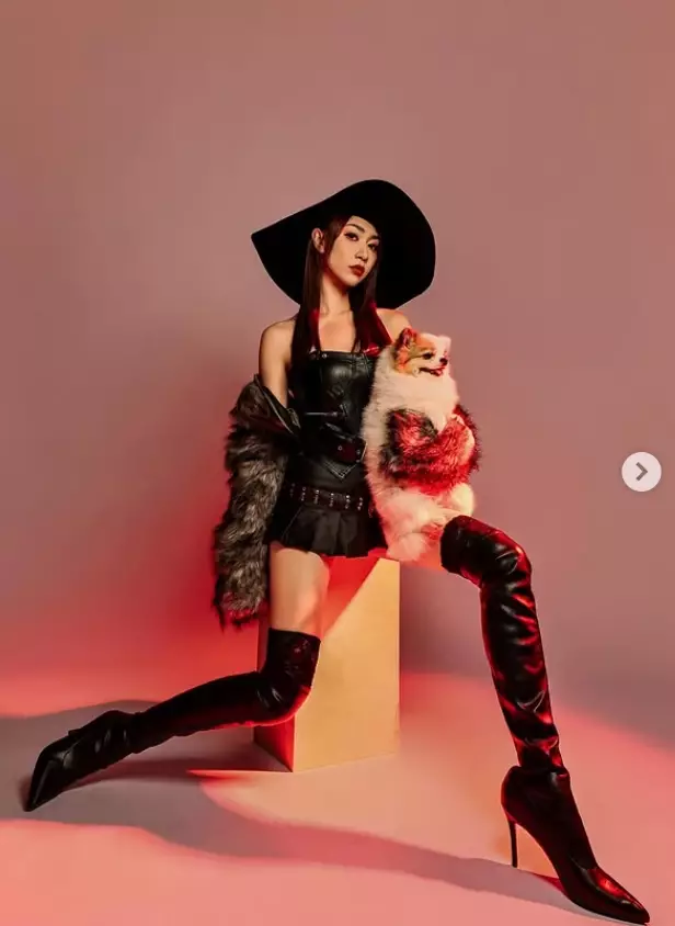 前港姐冠軍黃嘉雯(Carmaney)日前在IG台大晒一輯型格與女人味兼備的西部風寫真,更與愛犬Doxy一同入鏡。相片中,Carmaney以一身超型格西部牛女造型登場,頭戴一頂超大黑色皮帽,搭配黑色皮製Tube Top同短裙,再襯上一對黑色長靴,整體造型既硬朗又性感,完美演繹「剛柔並濟」的時尚風格。