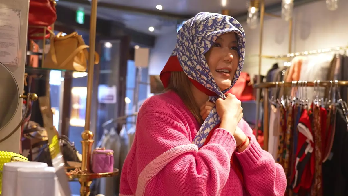 接下來的購物時間,來到一間90年代復古風的名牌店,Helen終於流出第一滴血。大大個Gucci真皮手袋,完全可以當手提行李袋用,都只係7千幾蚊港元。最吸引Helen注意的是一件Fendi恤衫,望落有點似護士服,她抵死的說︰「鹹濕醫生俏護士,買返去玩cosplay都得呀,一千蚊港紙。」意猶未盡還叫身旁工作人員過來探熱,玩得非常盡興。