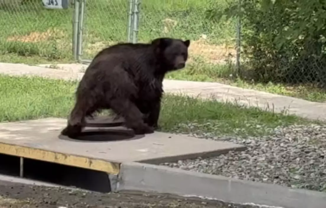 美國社區下水道疑「猛獸」出沒,警方到場見到一隻黑熊離奇受困,緊急救援助脫困。