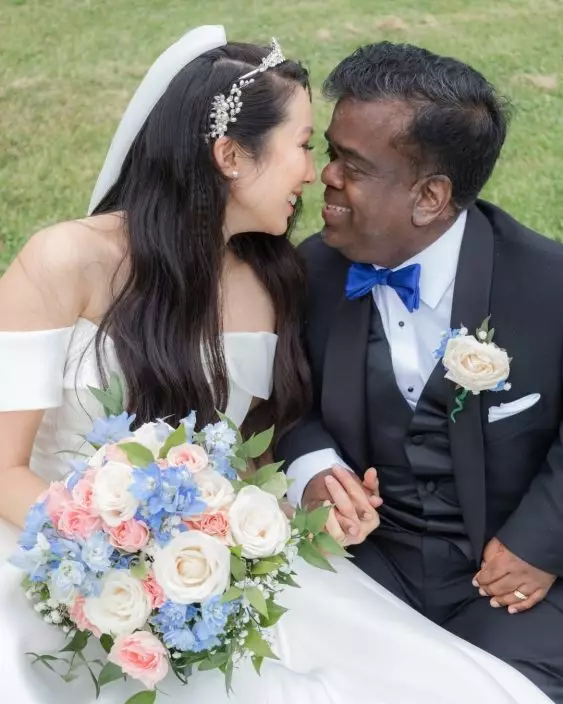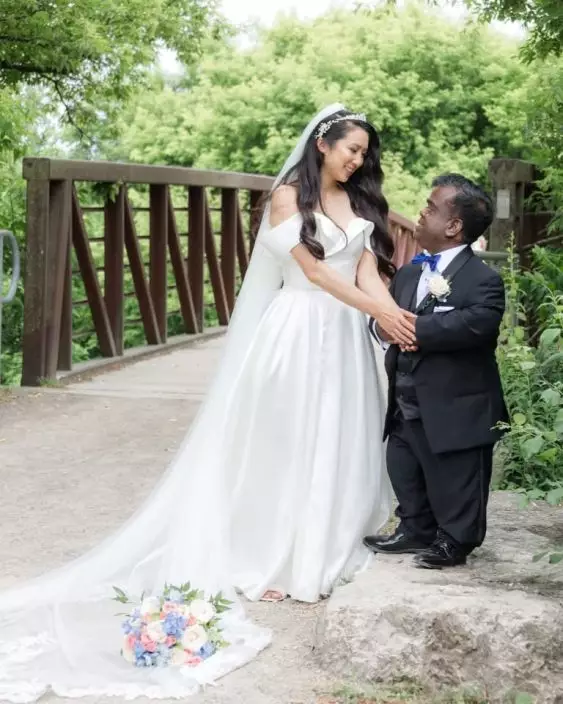 綜合外媒報導,加拿大多倫多一名亞裔新娘安妮塔(Anita Wing Lee)與患有侏儒症、身高僅120CM的工程師男友提姆(Tim Muttoo)突破外界成見,攜手譜寫一段勇氣與真誠兼備的愛情故事,感動無數網民。據悉,外型亮麗的安妮塔是社交平台人氣創作者兼企業家,擁有MBA學歷及數萬粉絲,提姆目前則任職工程師。2人更共同創辦慈善組織H2O4All,致力為全球提供潔淨水源。