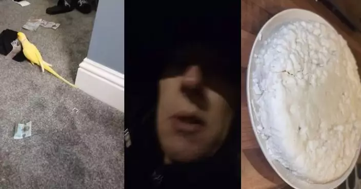 寵物鸚鵡講「販毒黑話」意外出賣飼主, 英警憑影片破獲犯罪集團拉15人。FB影片截圖@Lancashire Police