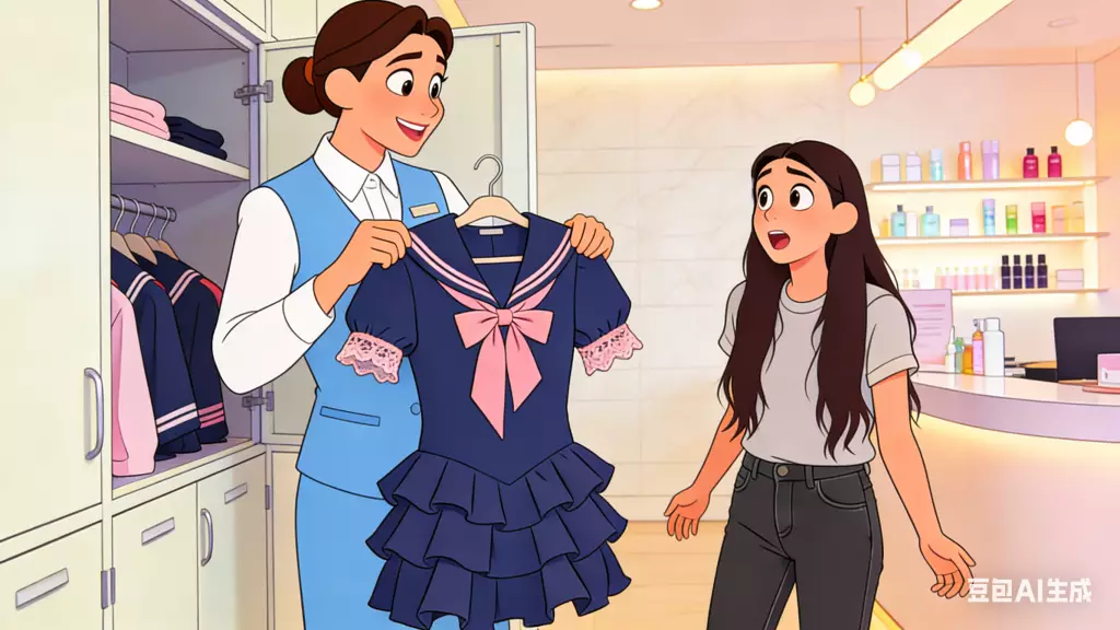 職員取出校服要求港女更換。AI生成圖