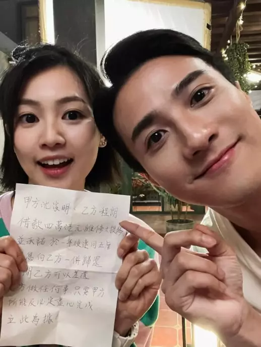 隨後庭鋒亦在社交網抵死晒出與拿着借據的郭柏妍合照,並留言:「債主程朗借了四萬港元比(畀)債仔家明,有相為證!」