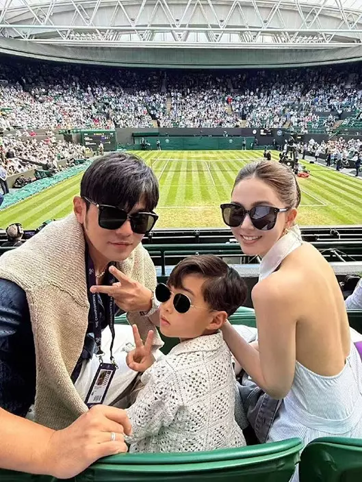 照片中,其中一張是周杰倫與兒子Romeo去看溫網的照片,Romeo罕有的以正面出鏡。昆凌又留言道:「帶著我們家的網球小選手看溫網比賽,這個髮型帥帥的喔!」另外還有一張三個子女在藍天白雲下奔跑的背影,昆凌有感而發:「這是他們人生中平凡簡單的一個下午,但他們的笑臉會永遠存在媽媽的心裡。」盡顯母愛!