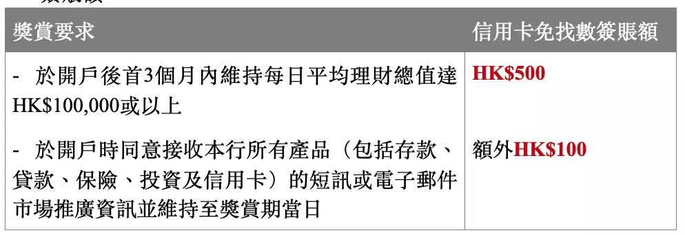 獎賞二:「綜合賬戶」或「理財e時代」賬戶開戶賞