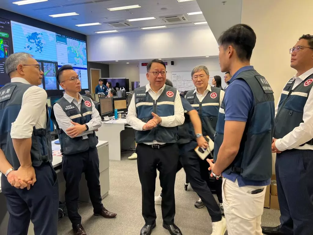 政務司司長陳國基早前暴雨期間,到緊急事故監察及支援中心視察。陳國基Facebook圖片