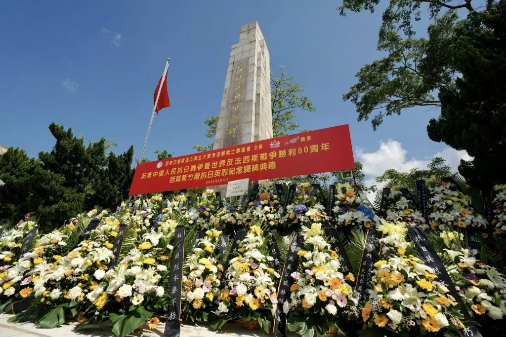 民政及青年事務局局長麥美娟、文化體育及旅遊事務局局長羅淑佩,以及中聯辦代表等人出席儀式,他們聯同其他出席人士為抗日英烈默哀,並獻花圈致敬。