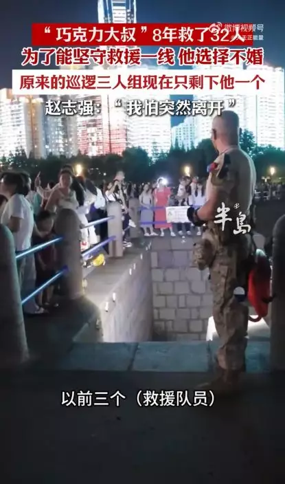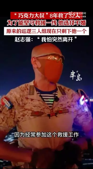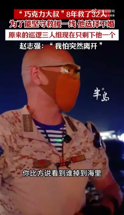 青島一名大叔義務巡邏海岸線8年救助32名遇險遊客,為了能夠堅守救援一線選擇不婚,以免連累妻兒。