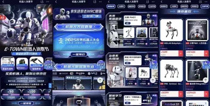 作為大會獨家全球戰略合作夥伴,京東則宣布未來三年將投入超百億元,助推100個智能機器人品牌實現億元成交,並推動機器人進入百餘萬個終端場景。同期,京東商城舉辦機器人消費節,線上銷售680餘種機器人,包括人形機器人、機器狗和外骨骼設備,價格覆蓋多檔,滿足企業乃至民眾不同需求。