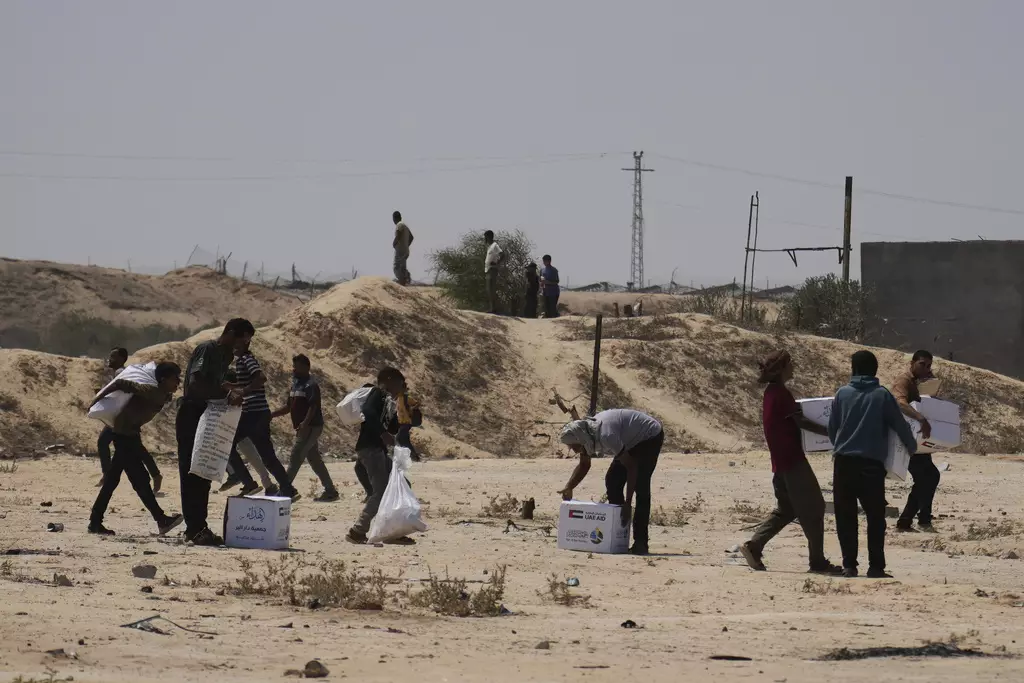 在加沙中部,大批民眾爭相收集空投的援助物資。AP圖片