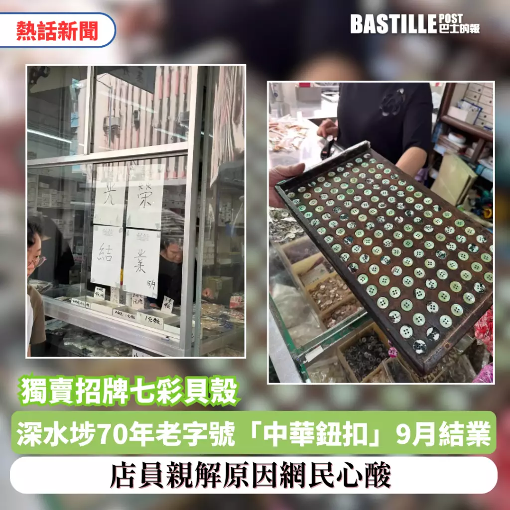 他補充指,店內所有鈕扣均由自設廠房以天然貝殼及鮑魚殼製成,色彩繽紛、質感獨特,惟深水埗「鈕扣街」的老店已所剩無幾,「執得就執」,「中華鈕扣」亦成為碩果僅存者之一。
