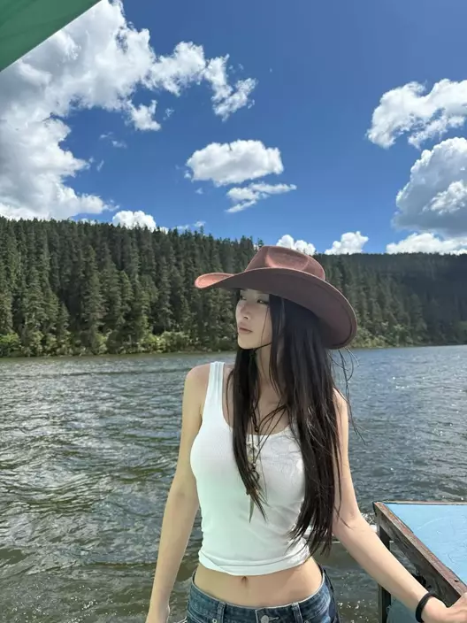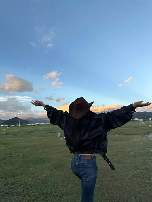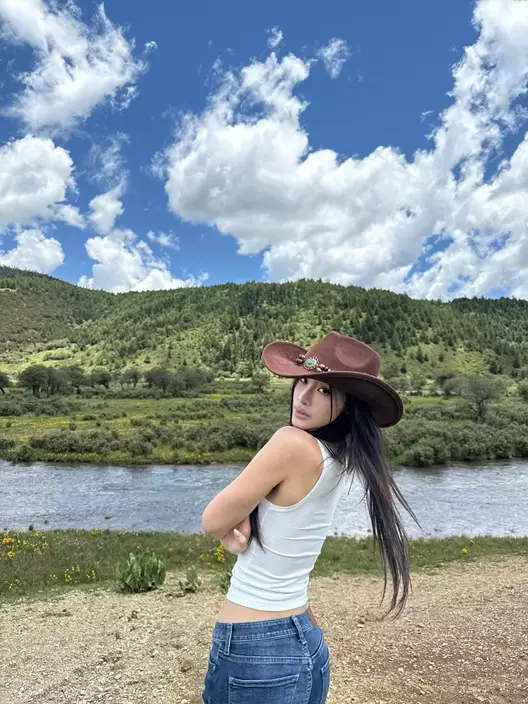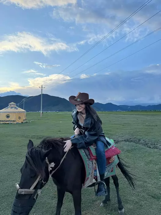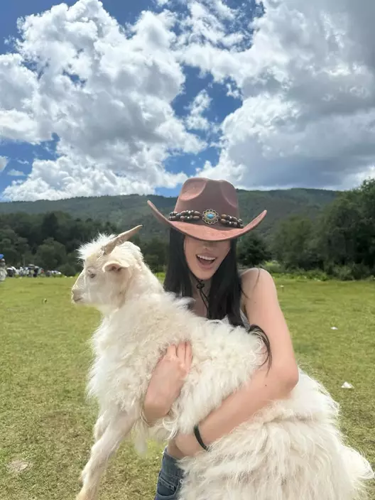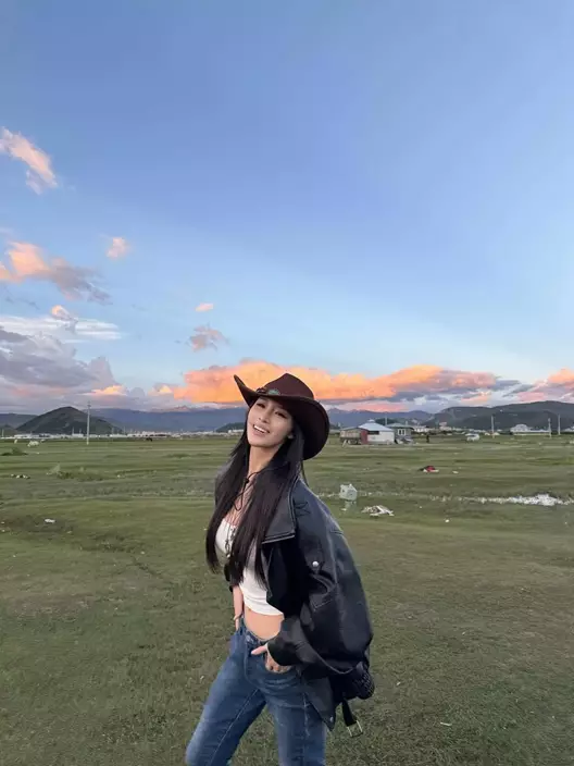 郭珮文在IG晒出靚相,可見當地氣溫較低,所以她打扮都比較密實,但去到香格里拉大草原時,她就換上一身牛仔Look,戴著牛仔帽、穿上背心外搭皮褸,以及牛仔褲,看似密實,但依然難掩好身材,當她脫下皮褸,傲人身材更即時盡現人前,又型又性感,網民都睇到心心眼!