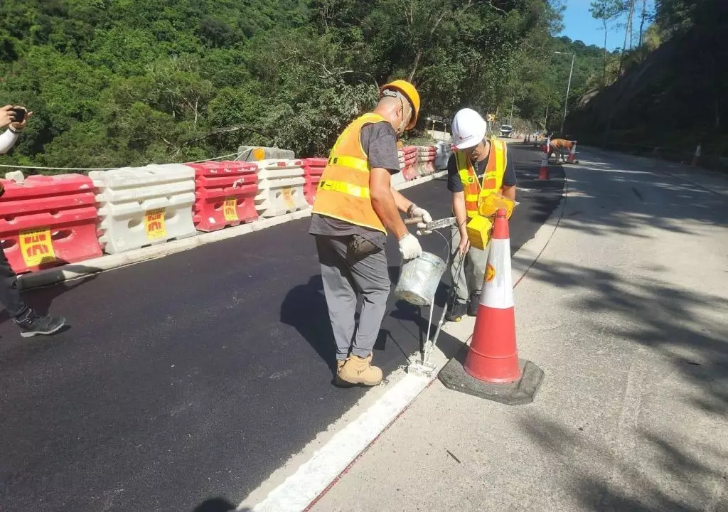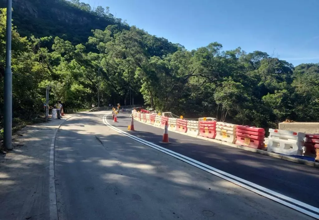 大埔新娘潭燒烤場以南一段新娘潭路,早前因持續暴雨,下方斜坡發生山泥傾瀉,一度需要全線臨時封閉。路政署表示,斜坡及路面緊急復修工程完成,傍晚6時有關路段已全線開通,恢復雙線雙程行車。