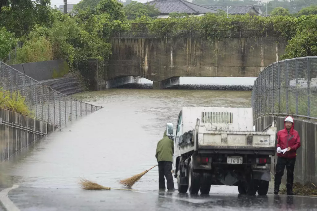 氣象廳表示,潮濕温暖氣流為熊本和長崎縣帶來破紀錄的降雨。AP圖片