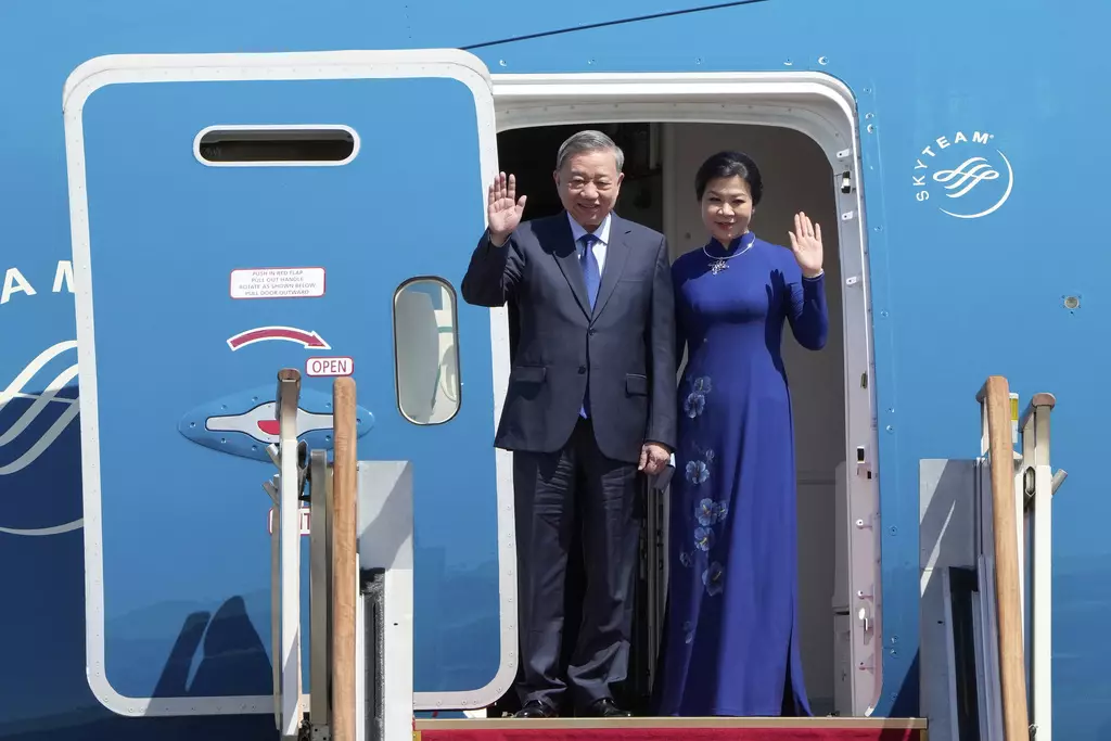 南韓總統李在明在首爾龍山總統府,同到訪的越共中央總書記蘇林會談。