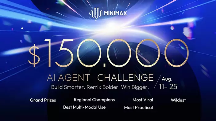 MiniMax 於 8 月 11 日(美國時間)正式啟動MiniMax $150000 AI Agent Challenge全球挑戰賽,激勵全球的人工智能開發者與創造者。