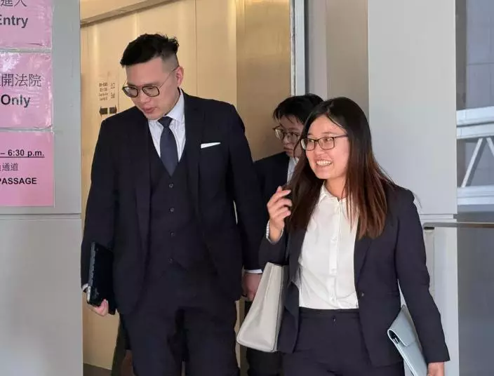 大律師胡栢昌(左一)、大律師梁麗幗(右一)。巴士的報記者攝