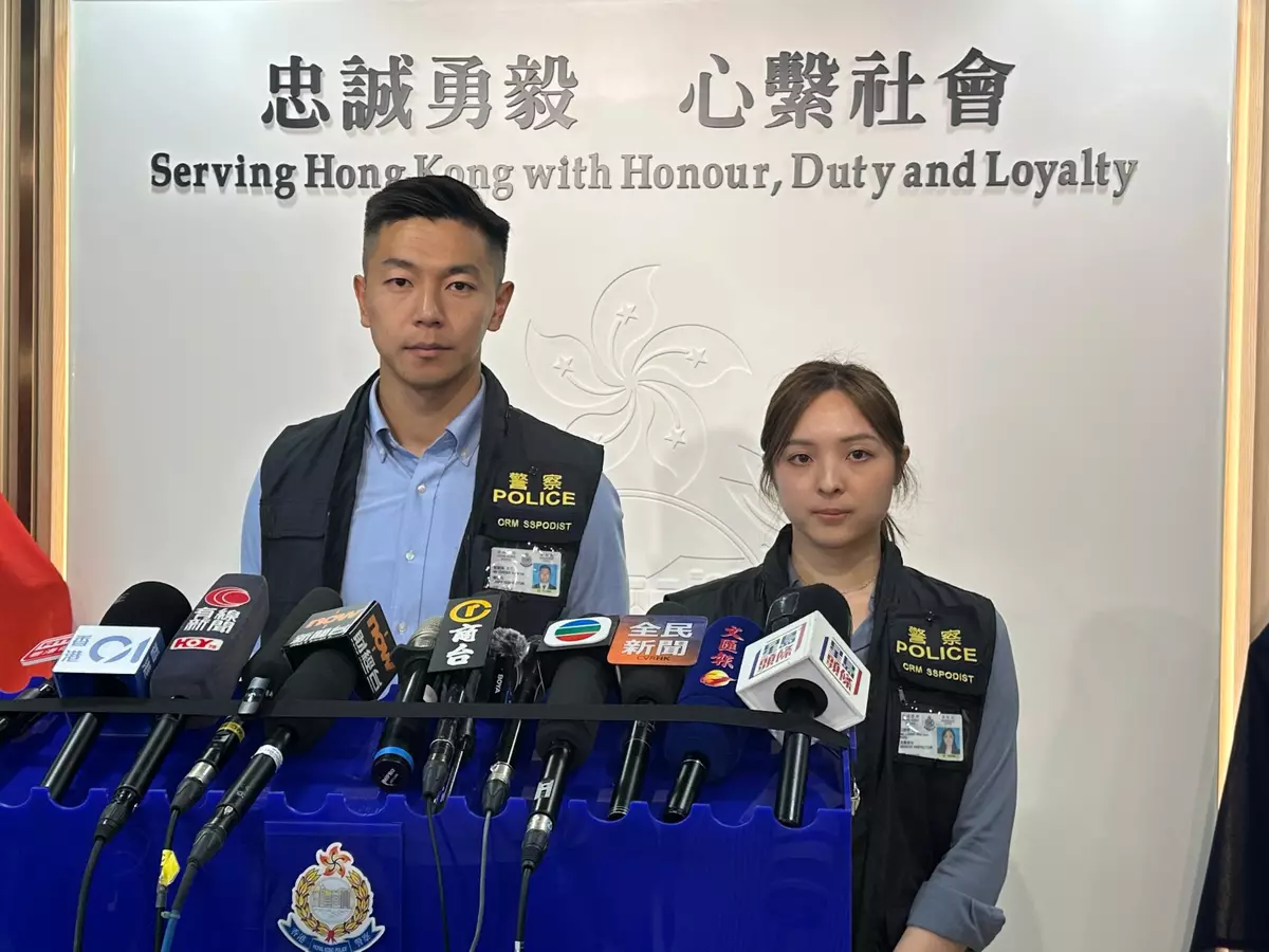 警方深水埗區助理指揮官(刑事)署理警司鄭騏鋒(左)及重案組第三隊偵緝高級督察梁慧琳(右)向傳媒簡報案情。
